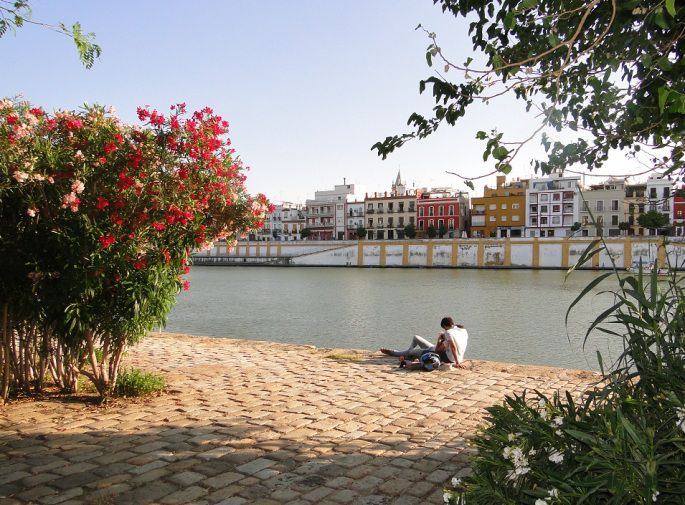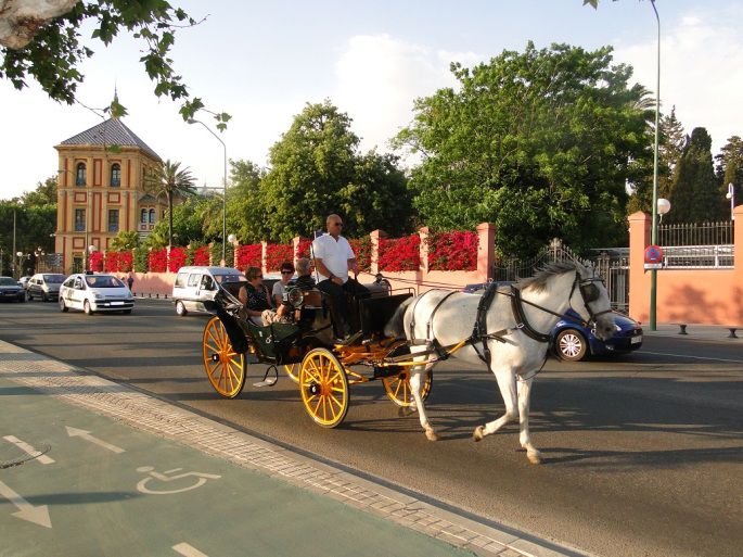 塞维利亚,这个不大的城市曾经举办过世博会而有了契机发展迅速,一条大河波浪宽,无数大桥跨两岸。 欣赏两岸美景可以走河边的大道也可以走高高在上的大道,一样的景色随着角度的不同变换着美丽任凭人欣赏,河水建筑,美丽和雄壮兼而有之,就像弗拉明戈舞,优美而热辣。 一方水土养一方人,因着地域的渊源;在那里特别喜欢一种在别处很少看到的开着紫色小花的行道树,把整个环境渲染得梦幻高雅,人也情不自禁变得文绉绉起来; 也因为不像大城市人口众多,这里的马路上经常有马车嗒嗒驶过,对中世纪风情的留恋在这里可以得到满足,坐在马车上的人看上去个个感觉良好,借助这个道具,似乎人也贵族了不少。
