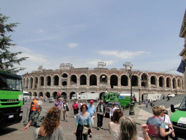 意大利北部,威尼斯与米兰的中间有一座古城叫维罗纳,我们的下一站就是它。早晨,从里亚尔多桥不远的家出发让拖箱的轮子慢慢地亲吻着平坦的路表达依依不舍之情,约半小时光景到达威尼斯露西娅(S.Lusia)火车站。到了那儿有点纠结,因为时间最近的一趟车是Esc即意大利高铁欧洲之星,行程一小时多点,票价21.5欧;普通车票价才7.4欧,差价很大,但普通车较慢且要晚一点开。考虑到时间和尝试在意大利坐一回高铁我们选择了欧洲之星。