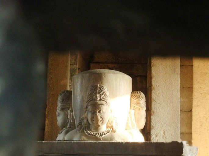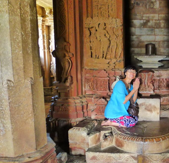 我们说,西庙群的雕刻比这要精美得多。小伙子还告诉我们,庙里供奉的是湿婆和他的四个妻子,于是透过窗户往里看,原来林迦的四面各有一个女人的头像,而中间的林迦就是湿婆神