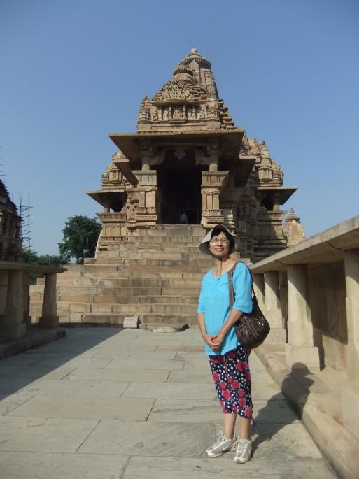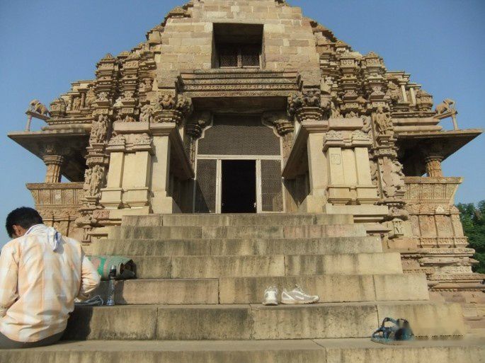 看完这最著名的坎达里亚·摩诃提婆神庙,我们又看了公园中的其他9座庙,它们的形式都差不多,都是建在高高的平台上,高高的台阶,尖尖的庙顶,外墙布满了细密的雕刻,但性爱的雕刻就少多了