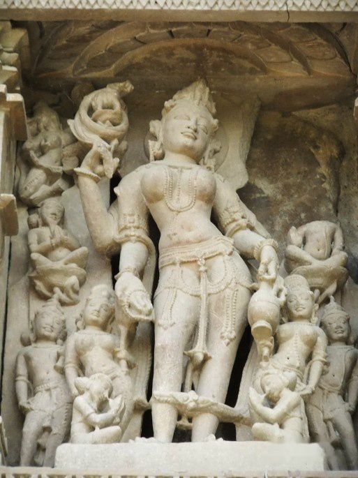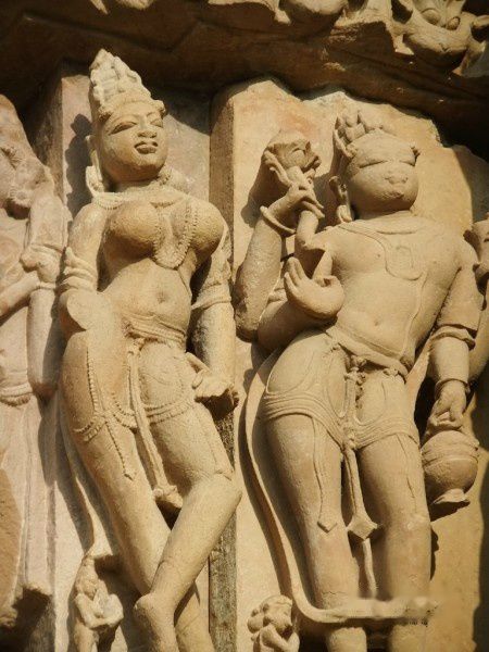 一种简单的说法是,昌德拉的国王们都荒淫奢靡,他们用这些雕刻来刺激自己的性欲,及时行乐。当时昌德拉王设想他本人就是男神,而女性则被设想成女神。参与者除了地位比较高的女性外,还有神庙豢养的大批姿色迷人的神庙舞女,即“神奴”(devadasi,提婆达悉,神的女奴)。克久拉霍神庙上那些风情万种的女性雕像,就是神庙舞女妖艳身影的写照。