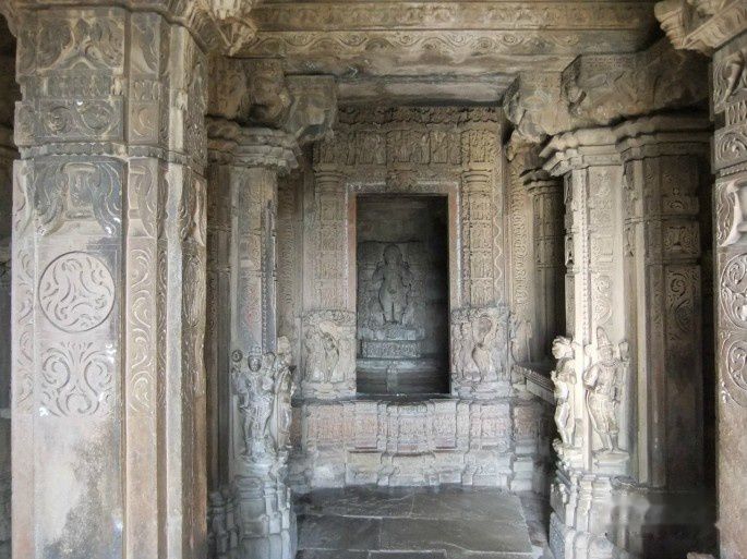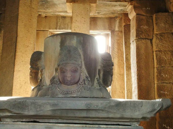 神庙主殿与会堂外壁中间围绕着3层高浮雕饰带,饰带上雕满了男女诸神、蛇神、树神、天女、贵妇、舞女、爱侣、怪兽的群像。此外每一处壁龛、柱间、拱门、托架,都装饰着各种雕像。据统计,这座神庙内外的雕像总数共872尊。那些妖艳娇媚的裸体女性雕像,仿佛鸣奏着一曲赞美女性魅力的交响乐章,
