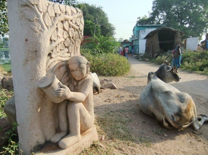 看我们害怕的样子,他们很快放下了眼镜蛇,带我们从村子穿过。一路上看见散落的神庙