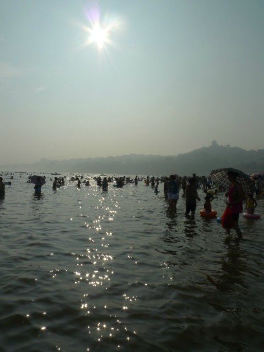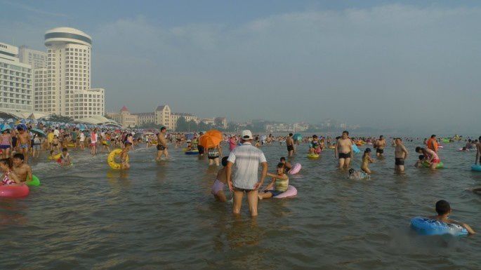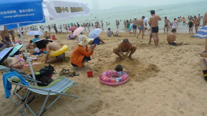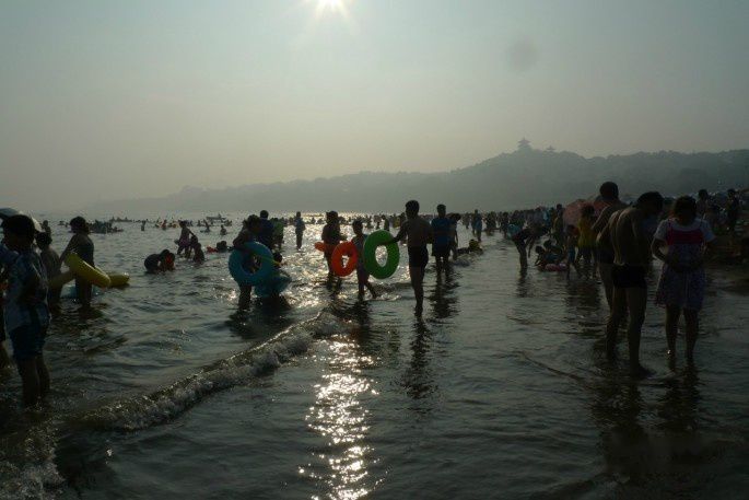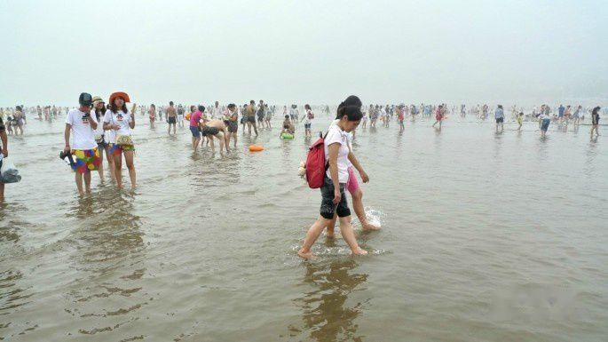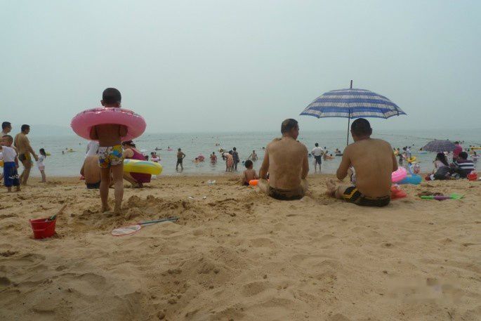 下午,七八个人相约去海滨浴场,只能有的人做交通车,有的人乘坐同学的私家车。虽然相约的是一个地方,但第一海水浴场纵向有三四百米,下午正值退潮的时间,沙滩上的人多的就像煮饺子一样,为了和他们会齐,我们不停地寻找另外几个同学,无论如何也找不到,一个半小时用于互相寻找。