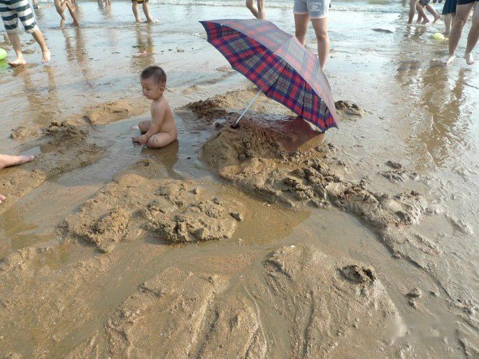 这里的人们忘情地与大海嬉戏,也记录了老婆像孩子一样的单纯,特别是坐在沙滩上玩热沙子的一份快乐。