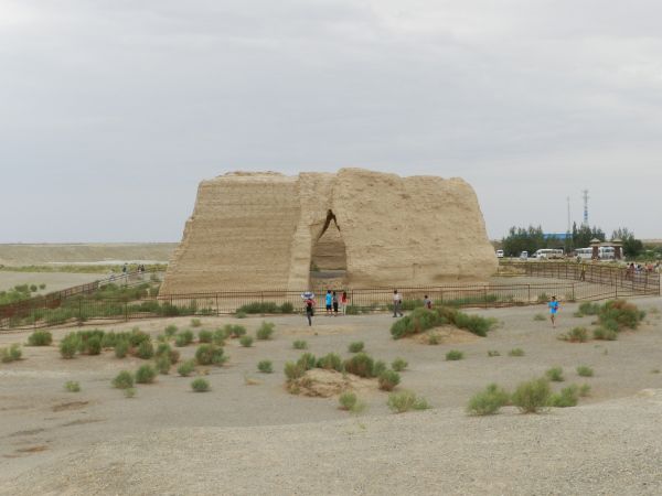包车就这点好,想去哪就去哪,想停多久就停多久。一路看了不可思议的盐湖,看了胡杨树、骆驼刺草地,看了汉长城遗址和玉门关,春风不度玉门关,夏风何尝不是啊!到玉门关时大概2点半,要知道我们午饭还没吃呢,朱师傅拿出个西瓜,我们拿出随身带着的零食,大家先凑合着垫了点,开始游玩。
