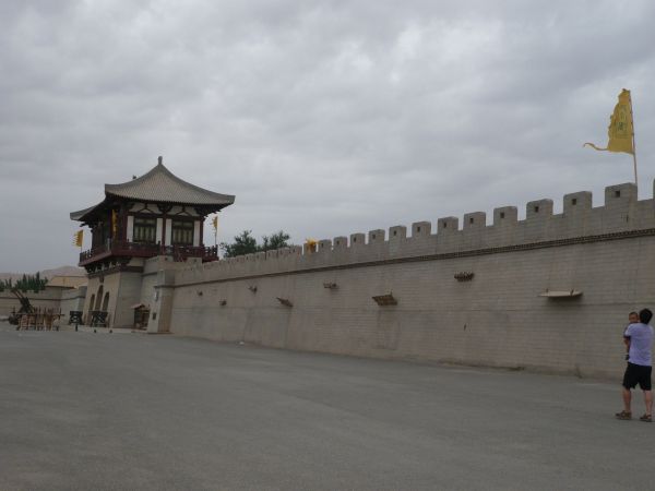 出了阳关,真的很累了,这一天的活动量够大,回去的路上还经过2个景点,西千佛洞和敦煌古城影视拍摄基地,我和老公居然异口同声都说不愿进去了,哈哈,就在门口拍张照片留念吧。