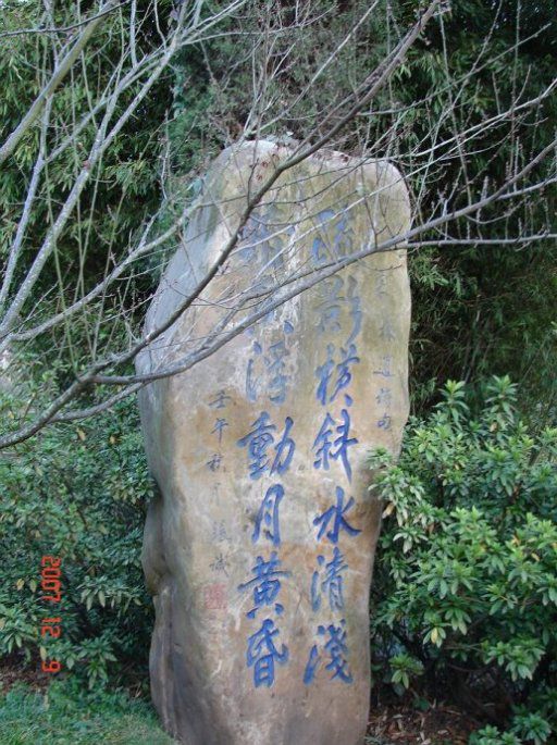 一个人走在通往公园深处的小径上,路经一处小屋,左侧有黄透了的参天老树,还有旧时的对联、林逋咏梅的诗句。公园内人工搭建的设施很少,已近6点,天色渐暗,只有几个小孩在公园门口处嬉闹,一两对恋人急着下山,呵呵,越往深处走,感觉整个公园都属于我一个人的了。