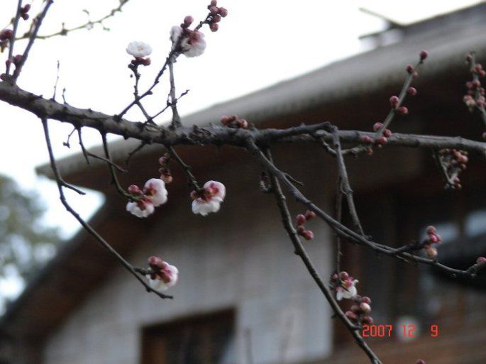 梅,历来就是高洁之物。桀骜、清高、历尽风霜似乎已成她的标签。我仔细端详了她的花瓣,她的确不出众,论妖娆艳丽,比不上和她有些相似的桃花,更别说和其他富贵名花相比了,更何况她还少有香气,除了腊梅。