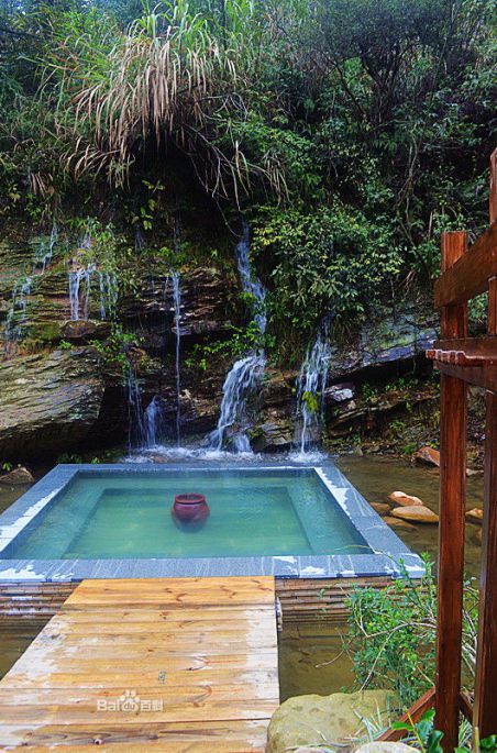 中药温泉:温泉泡池顺山势而建,这里遍布野生竹柏树,终年苍翠、叶茂荫浓,散发出的气味能驱赶蚊虫,所以在绿树环抱的汤池中泡温泉也不必担心蚊虫骚扰。