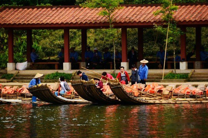 看见对面码头,游客纷纷在上竹筏。