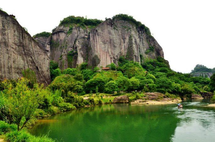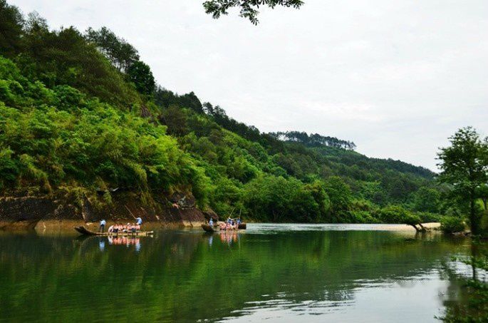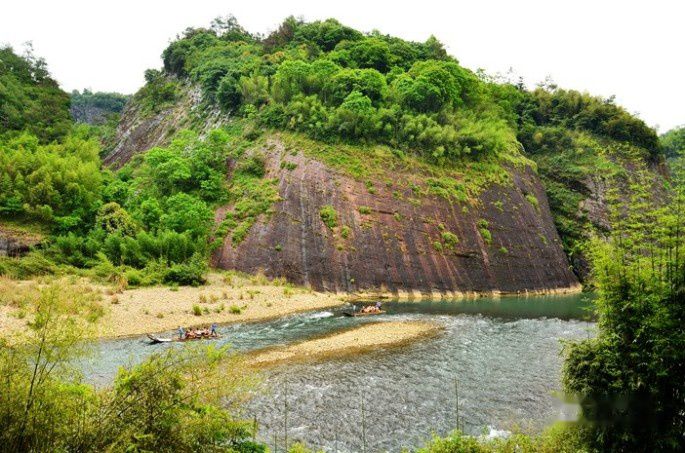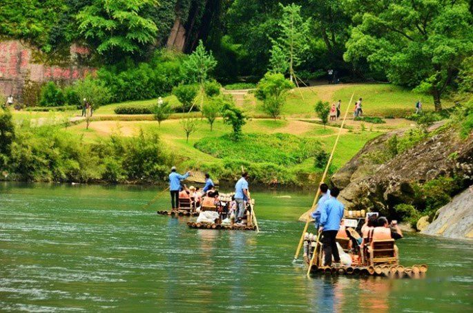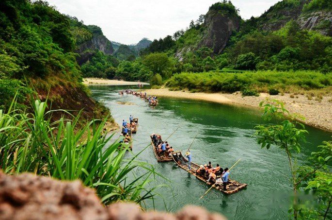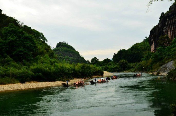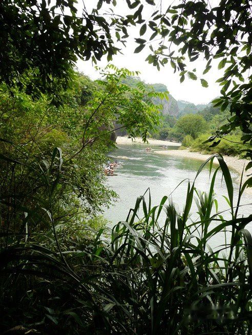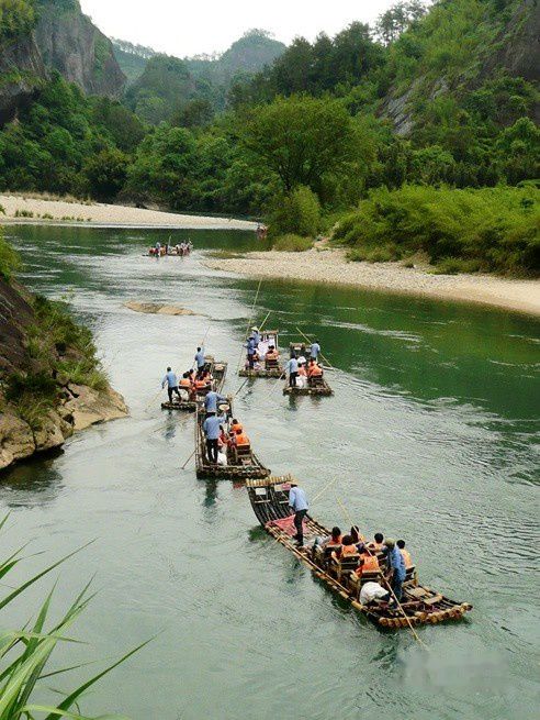 武夷山的风景美真是名不虚传,九曲溪的溪水清澈碧绿,一组组竹筏顺流而下,犹如画中游。