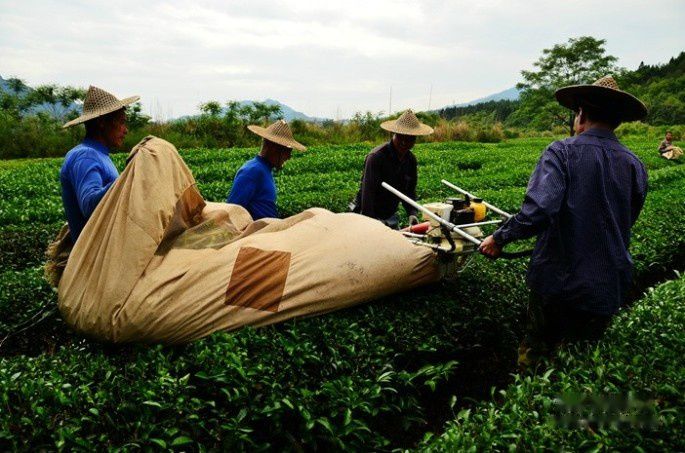 走了一会儿,耳听得一阵阵机器的轰鸣声,赶紧快步绕过路边的小树林,只见几位茶农正在用机械收割茶叶,四人一组,这么近距离观察机械采茶还是头一回。长见识啦!