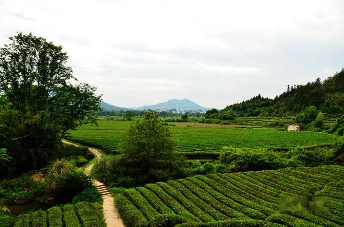 眼前是绿油油的整齐有序的茶树,茶树的绿色与山上植被浓郁的绿色相互交映,绿得让人心醉。
