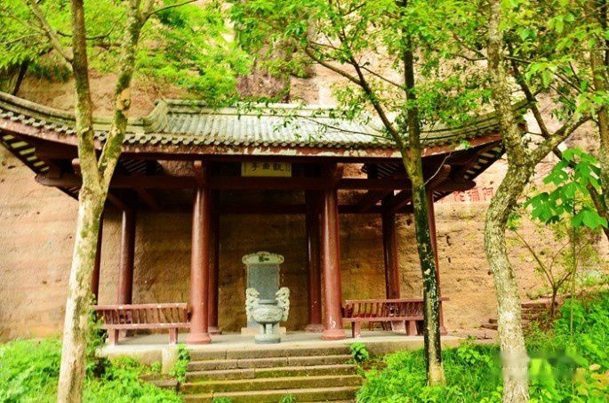 九曲溪北岸的观曲亭和寿字石刻。