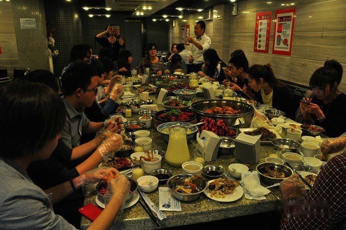 瞧这一桌的食客!既然是专门来吃蟹的,必须要罗列一下吃过的蟹品:清炖湖蟹、清蒸湖蟹、手撕毛蟹、毛蟹炒年糕、辣子蟹,每一种蟹都很有特色,吃货小鱼特别推荐的是清蒸湖蟹和辣子蟹。