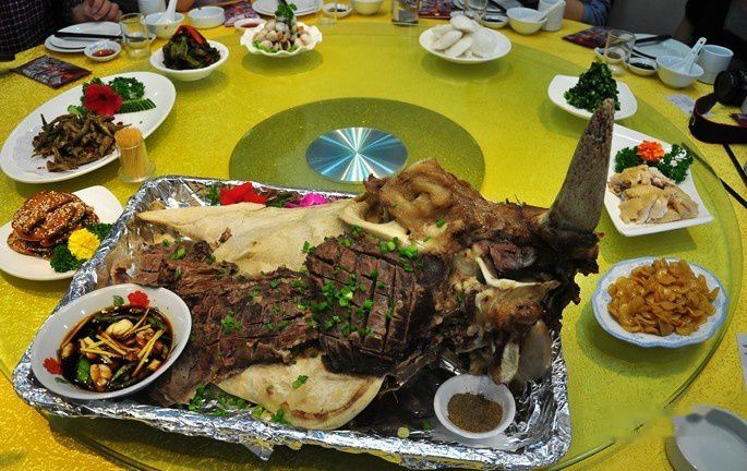 这家店最有特色的就是这盘“牛头宴”。实在不知道是怎么做的,牛头上的肉特别好吃,筋和肉配合恰到好处,咀嚼起来有劲道而且很嫩,再蘸上姜丝、蒜瓣,新鲜辣椒调制的酱料,那唇齿留香的美味至今还留在口中。。。现在想想也要流口水了。。。