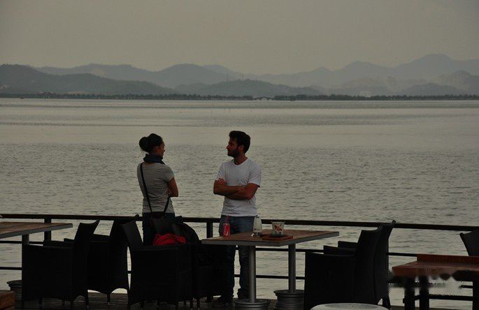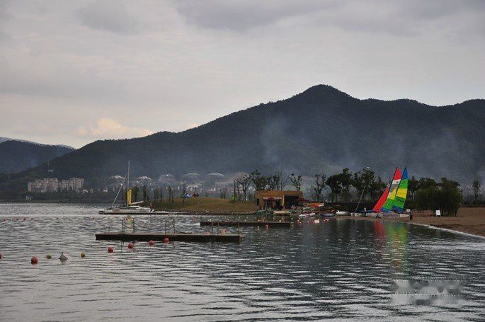 秋季的东钱湖游人很少,沙滩上还竖着排球网,那些深浅不一的脚印仿佛还留有仲夏游人嬉戏玩耍的欢笑声。