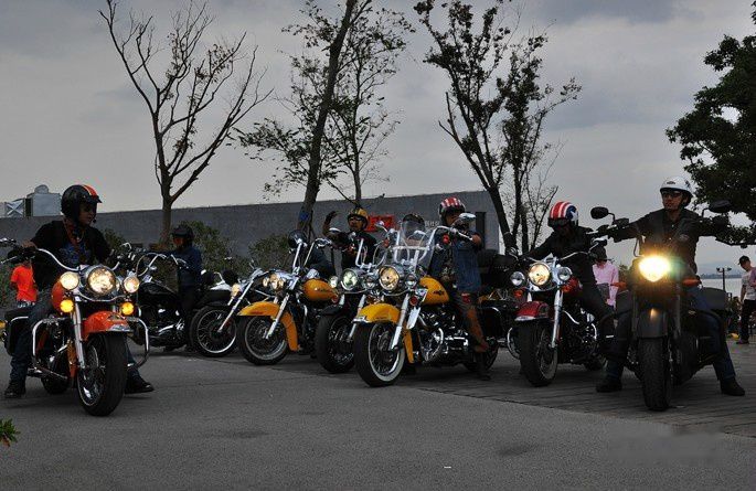 东钱湖以骑行出名,我们去的时候正好碰到了这个拉风的哈雷摩托车队。