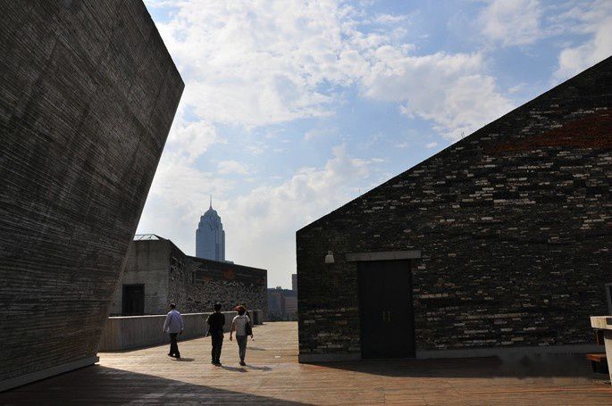 我看过世界上很多建筑,但是宁波博物馆的“新乡土主义建筑"还是着实让我耳目一新。建筑设计彰显地域特色,立面利用废弃的历代旧石料、老砖瓦砌筑的瓦片墙以及竹条模板清水混凝土作法,传递出凝重的历史信息和浓郁是江南乡土气息。