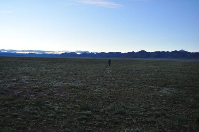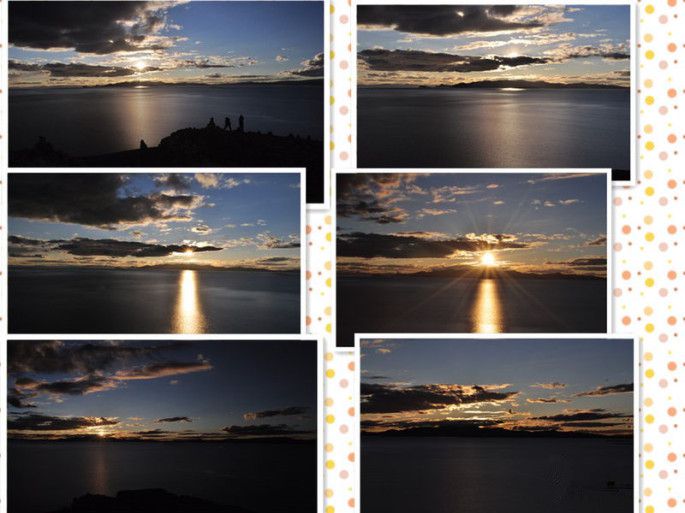 昨晚因为太冷,再加上我的那张床很不舒服,再再加上外面的狗叫了一整晚,基本上没睡着,挺痛苦的在床上翻来覆去。好不容易六点了,可以起床看日出了,可却很没精神,又很冷!哎,咬咬牙起来了!我 们约好,阿峰,美仪还有小雪我们四人要上山顶上去看日出。我以为阿峰知道上山的路,原来我们都不知道,在客栈门口问了一个老太太,山顶怎么上去,他手指泛 红的东方的那座山,其实我们想也是那里。于是我们就朝着那座山走,哪知杯具发生了,眼看是那么一座小山,可怎么走都走不到,我们走了一个小时眼看太阳快出 来了,我们还没开始爬山,不免有点沮丧,回头已经看不到我们的营地了,只有一望无垠的草滩,连湖都看不到了,我们四人又累又口渴。没办法了只能就在这拍 了,没想到当万丈光芒射向我们的时候,才发现我们没白走,这比在山上看美了。