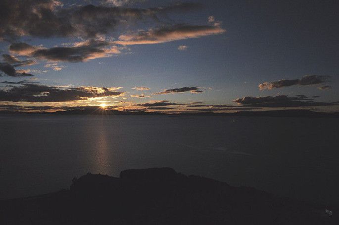 落日的余晖照在湖面上,就像晒了一片金子!!亮的刺眼,美的耀眼!太阳一下山,温度就开始下降,这时才发现捧着相机的手已经冻僵了。得赶快下山了,不然天一黑看不到下山的路。