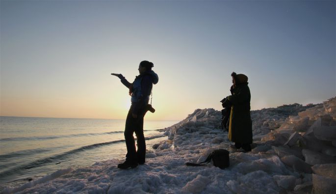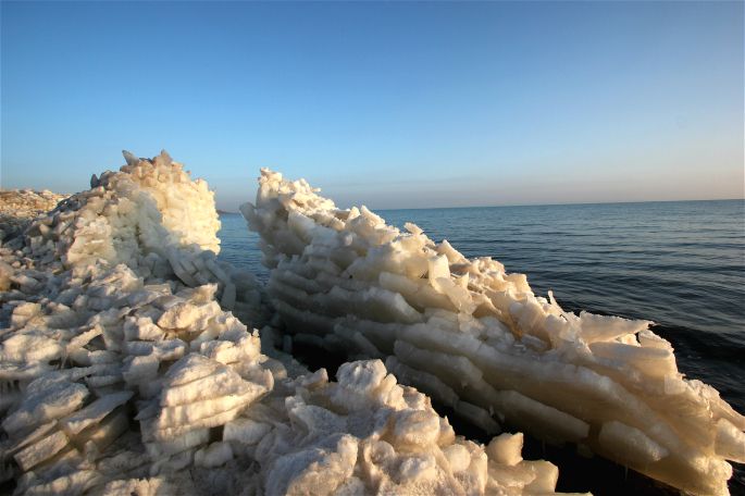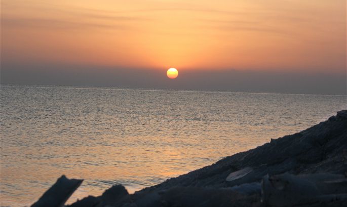 D2天 :早上很早的就醒了,穿着厚厚的军大衣跟着武师傅到了湖边的一个地方,这里堆积了有很多冰块,就如同一个小冰川,我们很小心的登上了小冰川上等候青海湖的日出,7点从红日从青海湖上冒出来了,当时我们很激动很震撼,刚拍几张照片就太阳已经悬挂在云层之中,光彩四射,层层云海被染得橙红鲜亮,如同一团火焰在沸腾,海水也被染红了,真应了“半江瑟瑟半江红”几只海鸥从湖面飞过,过微风举浪,好一幅“海上日出”图.....