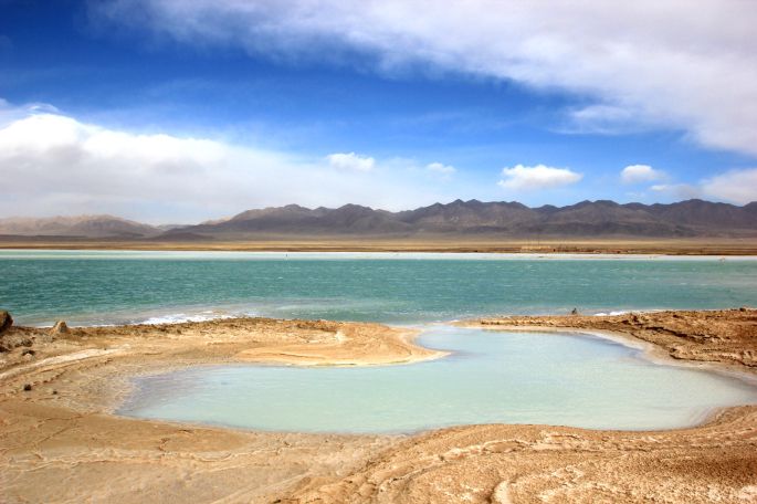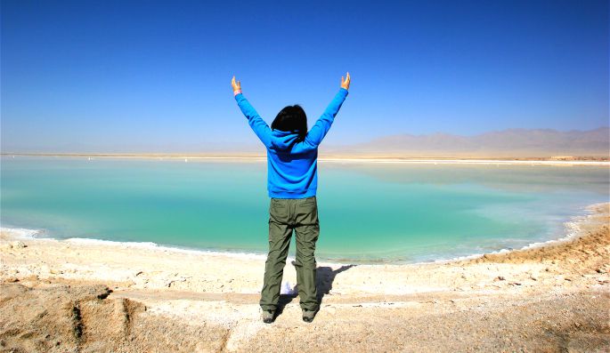 我们的车翻越了橡皮山,到达了茶卡盐湖,