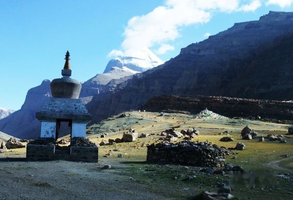 经过了喜马拉雅山脉,看过了世界最高的山峰珠穆朗玛峰的日出日落,还看过了喜马拉雅山脉中唯一完全在中国境内的8000米级高峰希夏巴马峰,还有喜马拉雅山脉其他我虽叫不出名,但一样雄伟或者美丽的雪山。初见冈仁波齐时你依然惊艳。他太不一样了,虽然比起那些七八千的山峰来他没那么高耸直插天际,但他形状奇特而壮美,与周围的山峰迥然不同,积雪的峰顶在阳光照耀下还闪着光芒。就在那一刻你已决定一定要去转山,这跟信仰无关,一直对雪山有着特别偏爱的你只想跟这雪山能更近点,更多点时间去仰望他,去感受他的神奇与美丽。