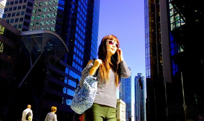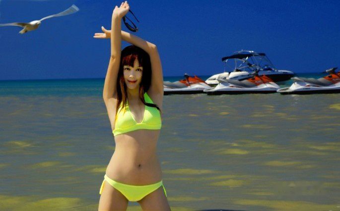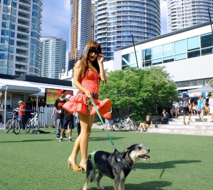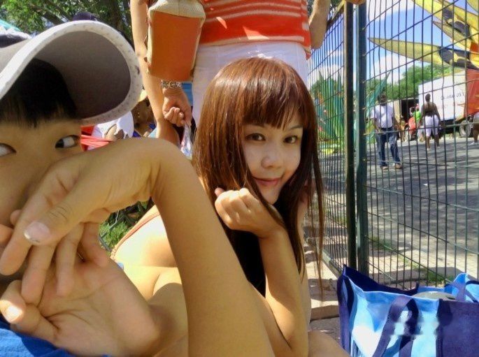 从地铁站里出来转乘公共汽车的时候,我们的目光已经被身着紫色比基尼泳装的美少女吸引过去了。服饰的夸张程度标着她们一定是要盛装出席一个欢乐的聚会。