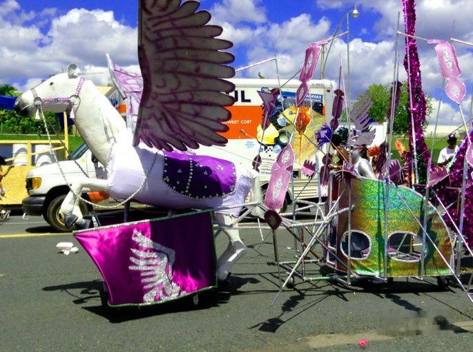 他们的服饰也展示了自己的想象力,有大象,白色的马,还有诡异的龙,展翅的大鸟,羽毛五彩斑斓。人们背后的翅膀也飘曳着犹如天使,看她们的脸上笑容,你能不觉得那就是天使在微笑吗?