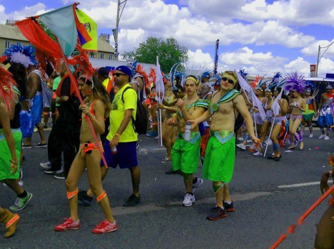 今天多伦多的所有公交系统为此将其视为重中之重,很多专职人员在指引人们如何快速到达目的地。多伦多享誉世界的两大活动包括同性恋大游行和加勒比大巡游,而后者不仅闻名遐迩,而且经济效益相当可观,每年吸引全球游客超过100万人,去年安大略省经济从中获益至少4.8亿元。直接参与的有1.5万人。公交车上,私家车上,出租车上都是赶往集结地的人,很多人还在“对镜梳花黄”,也是做最后的准备工作。当我们汇着**来到万人攒动的出发点时,才发现原来平日里繁忙的街道Lakeshore早就被封了,留给了游行的队伍。