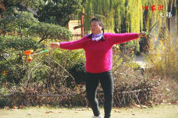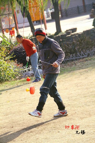 这个是领头玩抖空竹的高手,技术很娴熟。听旁边的阿姨说,他们天天都到锡惠公园来玩空竹,既锻炼了身体,打发了时间,也交到了不少好朋友,并且这儿还有好多夫妇共同来玩的。