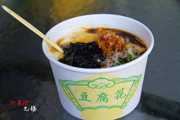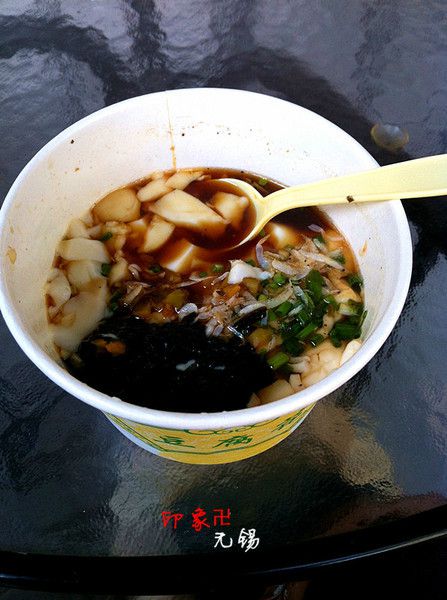 在惠山古街打头有一家很小的店铺,叫做惠山豆腐花。 这家卖的豆腐花特别美味,跟我往常吃的味道都不同,料也很足。 五元钱一大碗。