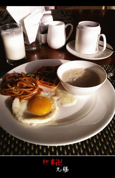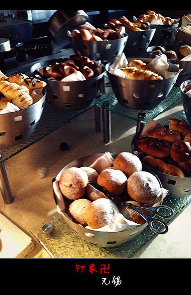希尔顿的早餐不得尝,品种丰富味道也很好。 坐在太湖边, 是个美好的早晨。