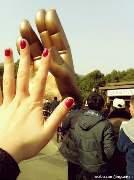 这是在灵山脚下看到的大佛。想要摸到佛脚需要爬长长的一段阶梯,然后排长队登电梯上去,才可以有幸摸一摸佛祖的脚趾。
