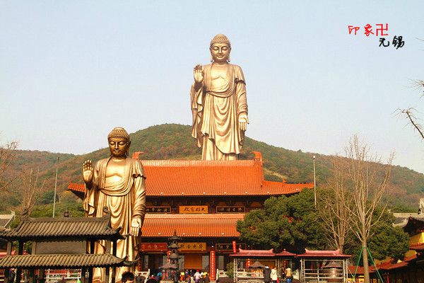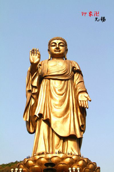 灵山的大小佛像。、、正午时分天气特别好,佛像散发着金光。