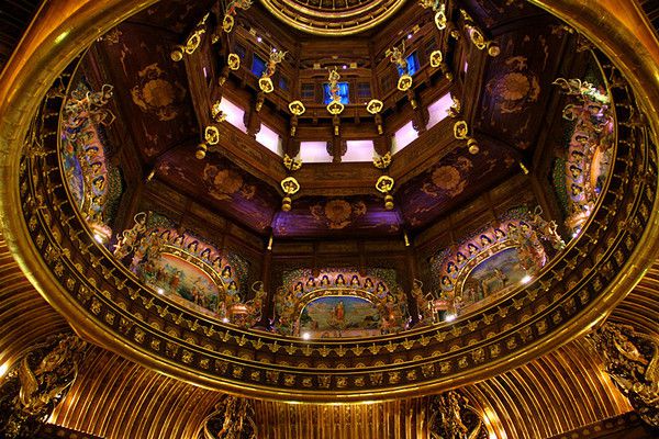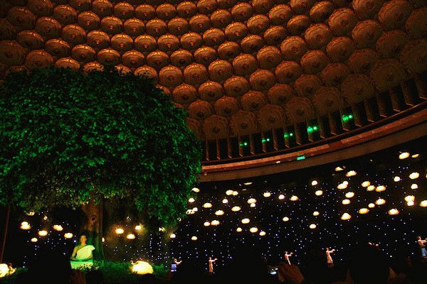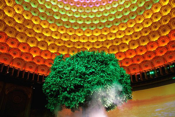 这是梵宫华美壮丽的顶棚。在这里抬头仰望,仿佛能看到头顶的星空。