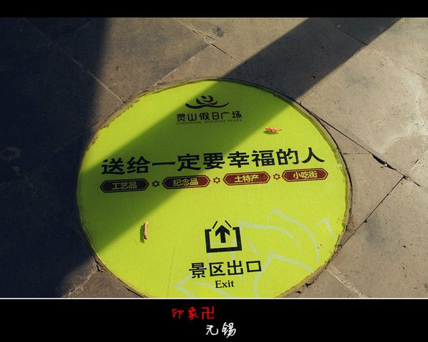 灵山为了刺激消费,在细节处做的很好。比如这样的标语贴在地上,忍不住就想带点手信回去。