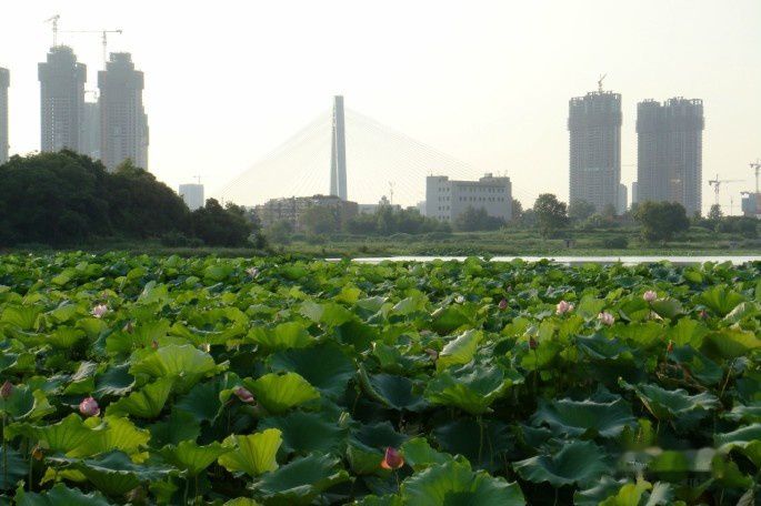 武汉月湖因古代却月城而得名,明成化年间,汉水改道,其主流经龟山北部汇入长江后留下月湖。