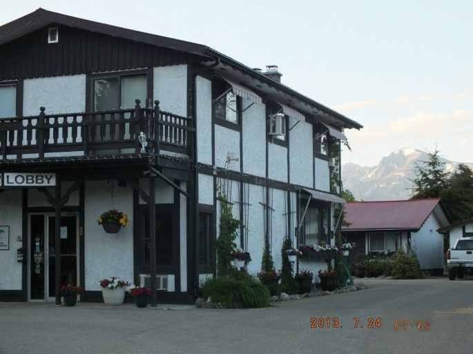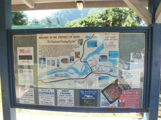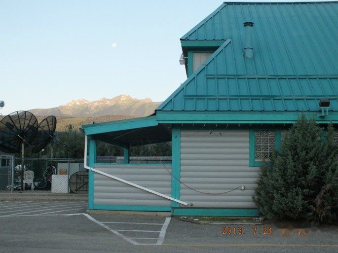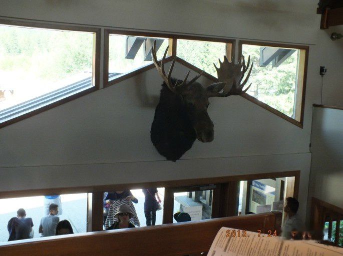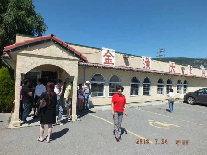 车行一个半小时到达希望镇休息站上洗手间,停留20分钟。据导游说以前有大批淘金者沿飞沙河经希望镇到黄金镇淘金,也就有了希望镇之说了。从休息站出来走一号转五号公路,开始翻山越岭,路上经常有野生动物出末中午时分到达一个叫迈瑞的小镇吃午餐(中餐),这是个木材小镇,路边存放着待运的原条。四周被大山围着,好像树不是很多,有点光秃秃的感觉,也许是都砍光了吧?海拔比温哥华至少高了一千米以上,有种荒漠苍凉的感觉,嘻嘻走了一上午山路大家的心情随着地貌的变化也起了变化了,更期待着看到落基山脉了。