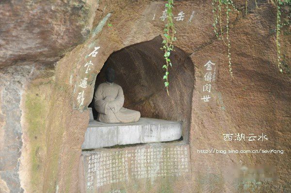 事实上,灵隐这座深山古刹确实深得“隐”之精髓。寺外主要景点是飞来峰,飞来峰在地质学上属石灰岩,怪石嵯峨,古树繁茂。飞来峰奇石嶙峋,石缝间却也有绿意。