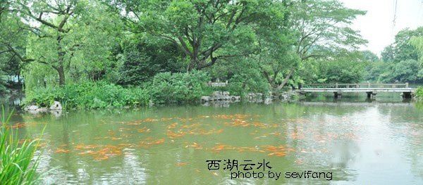 在苏堤上也不知道走了多久,经过了好多桥,最后总算到达了下一个景点——花港观鱼。上善若水,西湖的十景,紧紧围绕水的各种形态展开。花港观鱼的港。平湖秋月的湖,三潭印月的潭,都是西湖离开不的水。