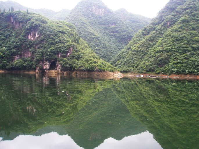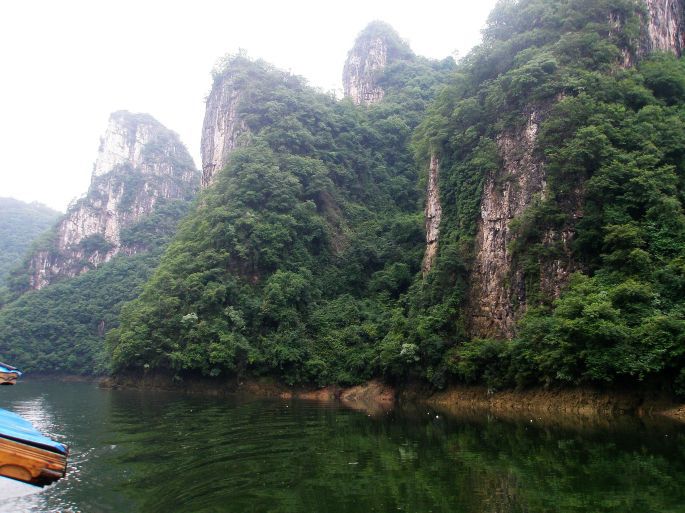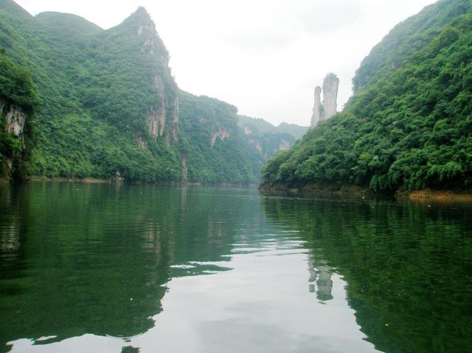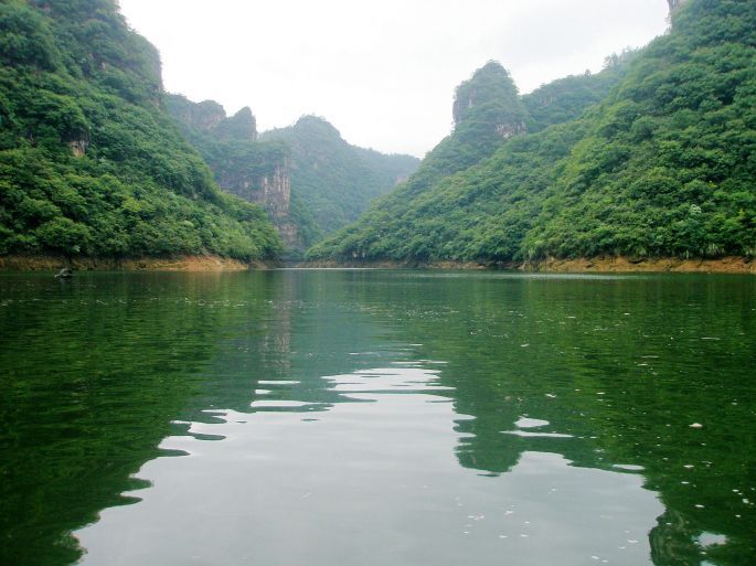 它那以喀斯特岩溶为主体,形成的丹霞地貌,是舞阳河得天独厚的资源。它的高峡平湖,流泉飞瀑,奇峰峭壁,为它的山水增光又添彩。这次的游船之旅,养眼润肺又舒心。