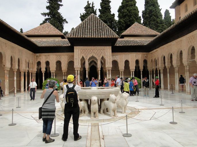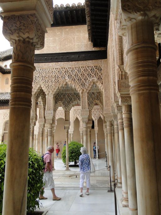 来格拉纳达的人无一不是冲着阿尔罕布拉宫,这个摩尔人留下的红色宫殿轰动着整个世界,近悦远来的人们都是屏息凝目欣赏它的风采,从惊讶到惊叹,差一点没说出“此生无憾了”。 尽管一个“精致”无论如何不能表达阿尔罕布拉宫的全部,但由于我文字的贫乏,搜肠刮肚后还是羞答答地捧着这个“精致”才能稍微表达我内心的感受,“书到用时方恨少”,怨谁呢? 阿尔罕布拉宫,它的每一个细节都作了精心的制作,处处无可挑剔,难怪最后一位摩尔人国王被赶出阿尔罕布拉宫的时候,回头远望自己再也无法返回的宫殿,留下了伤感的眼泪。