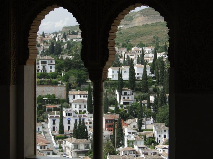 从阿尔罕布拉宫看老城,四方顶的房子,清一色的白墙棕瓦,密而整齐,可见当时规划之用心。
