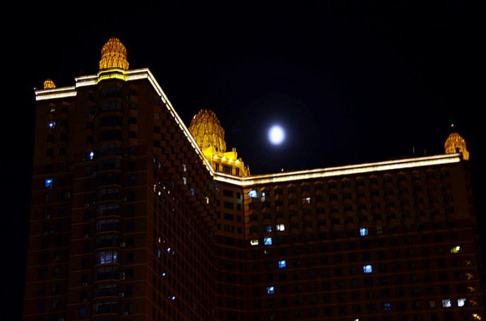 站在临江门一座高大酒店前,凝望着月亮圆圆皎洁的挂在楼顶上,建筑的轮廓灯饰,明月展开笑脸,迎接着我辛苦奔波一天松江湖,不断爱美的寻觅。