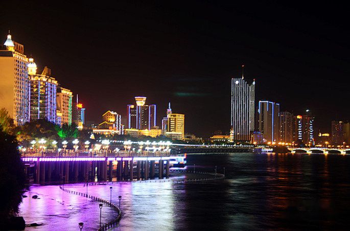 吉林的夜色降临了,我急急忙忙从火车站公交来到毓文中学下车,来看看松花江夜景。去一个城市看夜景拍夜景,似乎已经养成习惯,白天的喧闹,夜晚的璀璨,特别是在有着大江大河的城市,一定不要放过这样的美艳。我真的为参团的游客遗憾,往往这个时段,他们已经上了火车,看完“伪皇宫”匆匆忙忙离开了本应属于自己的空闲,奔驰到一处明天黎明的景点。