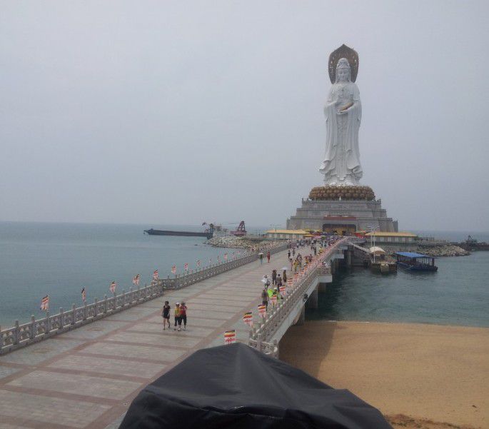 第二天早晨,同行的6个人都精神焕发,出去找个家早餐店吃了海南粉汤,我们选的第一个景点是南山寺,从三亚市区到南山旅游区有半个小时的路程,到了南山寺,景区门口停满了旅游大巴及游客自驾车,可谓是人山人海,我们购买了门票及电瓶车票,开始我们的南山之旅,一走入景点,就深深被南山寺的佛教气息所感染,感觉这里就像一块净土,一个没有任何污染而神圣的圣地,远望可以看到高高屹立的南海观世音宏伟的坐落在海中,这时的自己真正的心无杂念,只想倾心领略佛家神圣的造诣及宗教文化。让心灵得到洗涤,了解佛的大慈大悲。在景区中看到的游客都抱着诚挚的心来拜佛,听着景区讲解员细说南山寺的由来及意义,内心觉得原来佛是如此的伟大,以前自己并不信宗教,但此行让我觉得心里有个美好的信仰其实挺美好的。向着观世音走进,越走近观世音佛像内心越为激动,情不自禁的有了大爱之心。自己也去买了香,诚心的跪拜。祈祷大善大爱的观世音保佑家人平安,父母健康的心愿。当我走近佛像,仰头就可以清晰的看到神圣的观世音,甚为激动,只可惜自己没有带上象素好的相机,能清晰的拍下圣像留作纪念。看完南海观世音后我们去了南山寺其他景点,领略佛教文化,随行的同伴还为自己求了姻缘签,3个都求了上上签,挺好的。当纷纷走完南山各个景点后我们坐着电瓶车回来景区门口,回到市区找一家餐馆吃饭,本人觉得接近三亚湾的一家湖南菜挺不错的,价格也实惠。