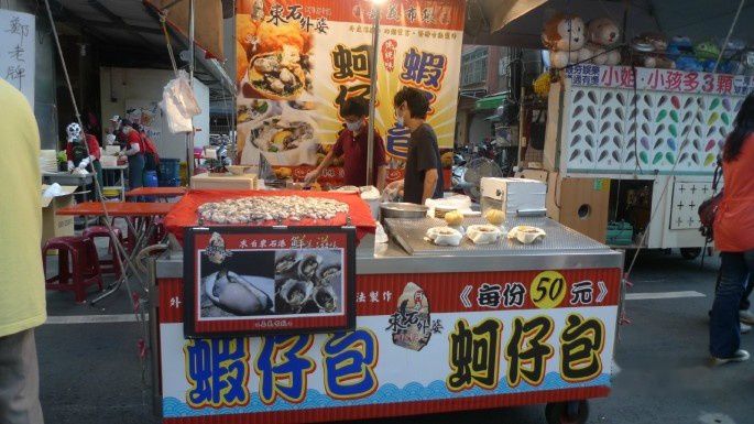 去玩故宫还去了101大楼和诚品书店。一直到晚上7点多吃晚饭。晚饭后,想着是第二天就走了,要回家了,跟朋友去逛了一下夜市——宁夏夜市。这不是旅行团夜市,当地人也去的,感觉还不错,吃了水果、香酥芋丸,喝了木瓜鲜奶,都不错。经过一家盲人按摩,好想去按啊,可惜台币用完了,又不能刷卡。